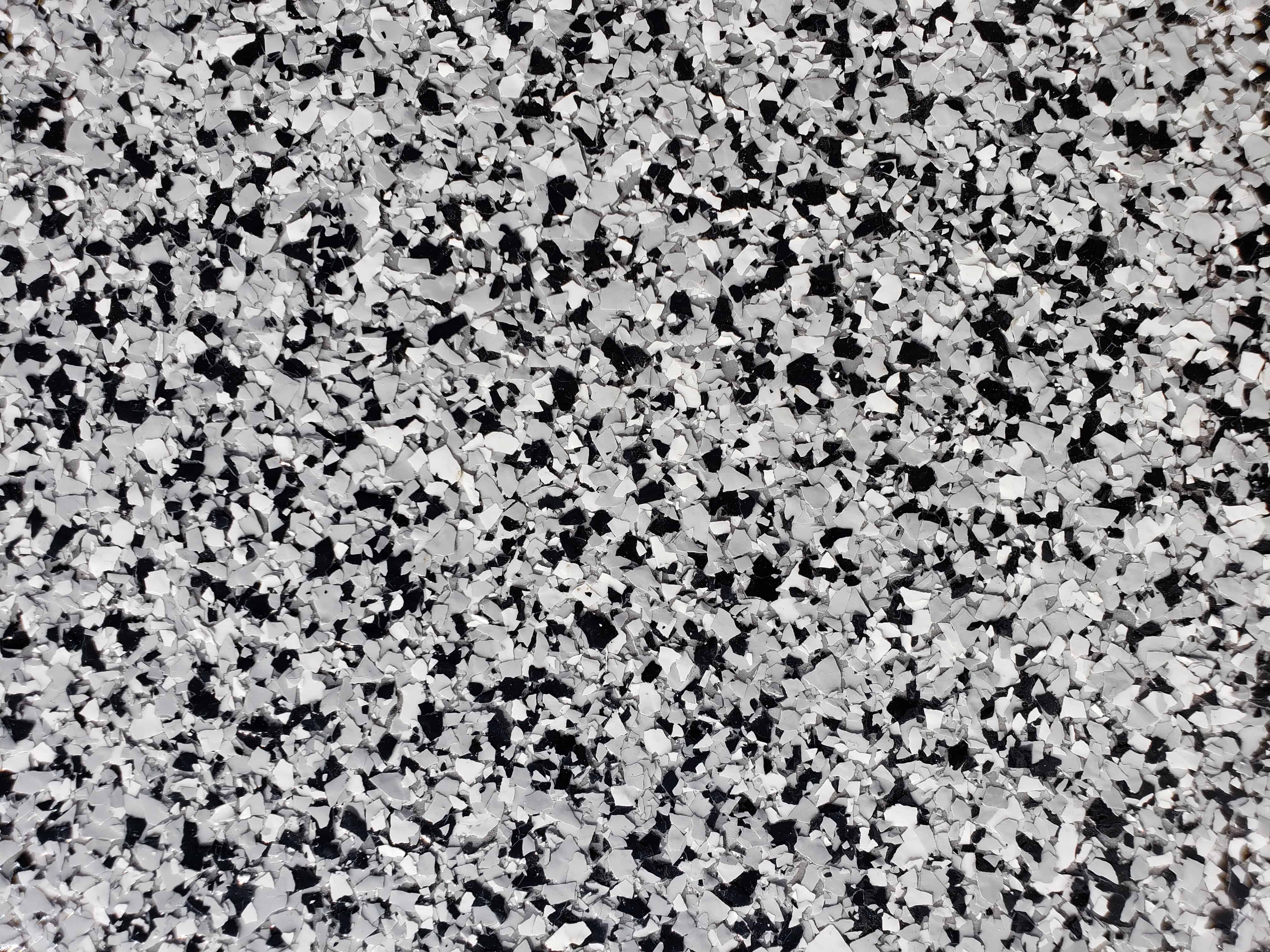 A multi-coat chip broadcast polyaspartic or epoxy coating system designed to provide a capable, terrazzo-like seamless flooring finish.